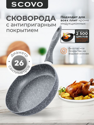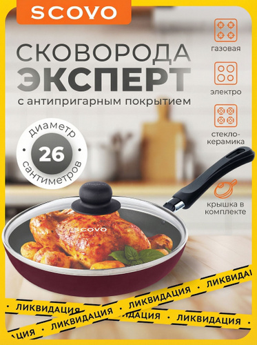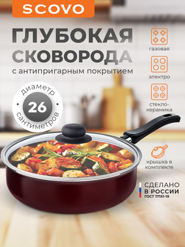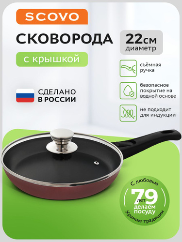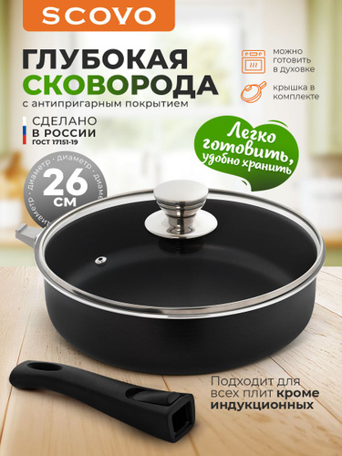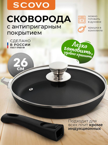 Сковорода с крышкой 26 см со съемной ручкой с антипригарным покрытием SCOVO