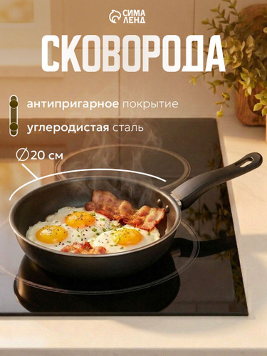 Сковорода с антипригарным покрытием, 20 см, бакелитовая ручка, углеродистая сталь