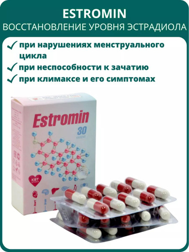 Estromin восстановление уровня эстрогенов, 30 капсул. Для баланса половых гормонов у женщин, менструального цикла, при ПМС
