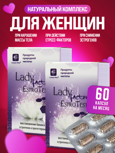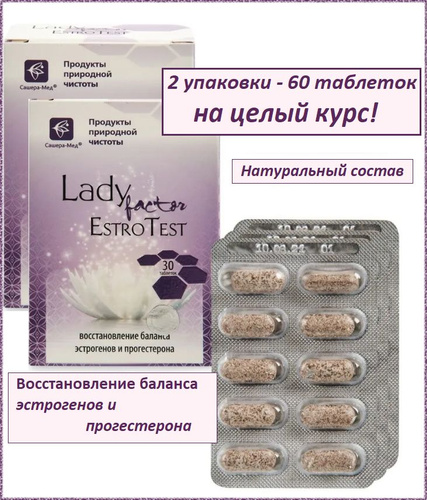 LadyFactor Estrotest для баланса эстрогенов и прогестерона, 2 упаковки по 30 таблеток - на целый курс. Для женского либидо, нормализации менструального цикла, при бесплодии. Сашера-Мед