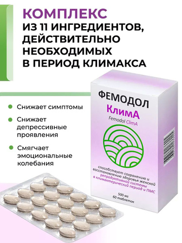Фемо-Клим - 60 таблеток, БАД для облегчения симптомов менопаузы, таблетки по 505мг
