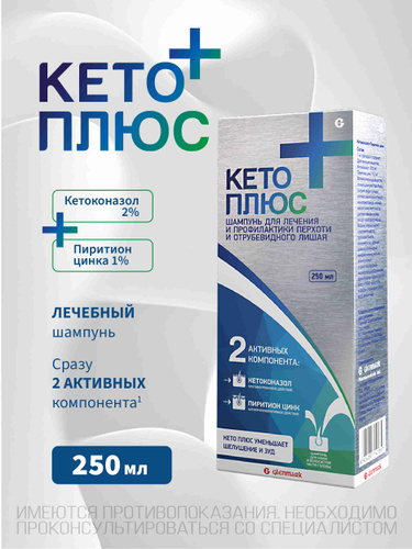 Кето плюс лекарственный шампунь от перхоти (кетоконазол 2% + пиритион цинка 1%), 250 мл