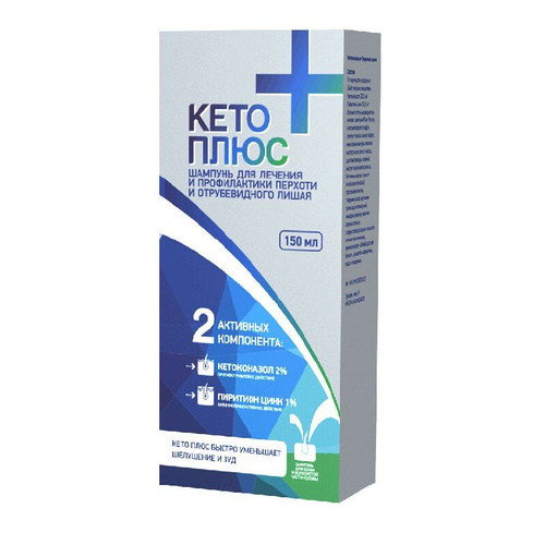 Кето плюс лекарственный шампунь от перхоти (кетоконазол 2% + пиритион цинка 1%), 150 мл