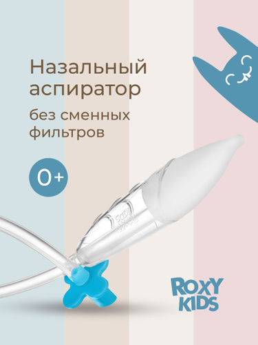 ROXY-KIDS Аспиратор назальный для новорожденных детский / Соплеотсос для новорожденных 0+ с мягким наконечником, голубой мундштук, в футляре