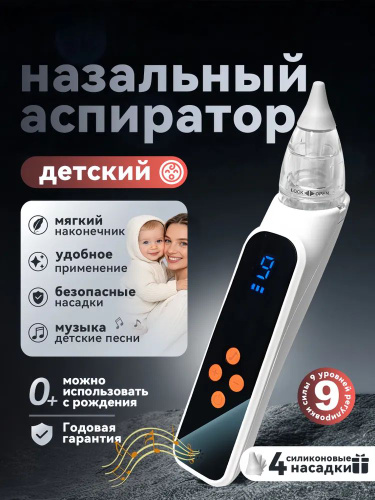 Электронный аспиратор назальный для новорожденных соплеотсос с насадками