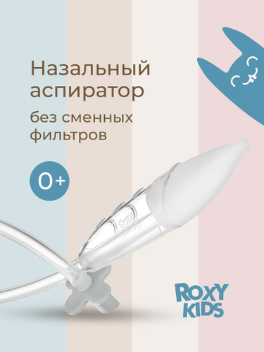 ROXY-KIDS Аспиратор назальный для новорожденных детский / Соплеотсос для новорожденных 0+ с мягким наконечником, розовый мундштук, в футляре