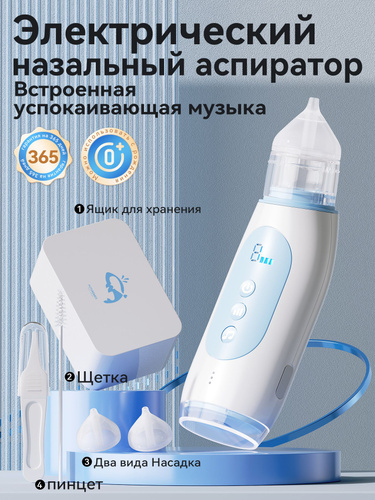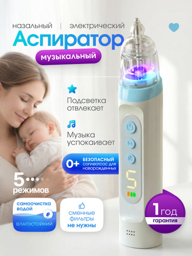 Влагостойкий аспиратор назальный детский электрический для новорожденных 0+ соплеотсос, музыкальный, тихий, безопасный, очиститель носа для младенцев