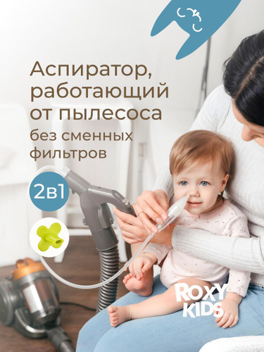 ROXY-KIDS Аспиратор назальный для новорожденных детский 2 в 1 с насадкой на пылесос / Соплеотсос для новорожденных 0+ с мягким наконечником, салатовый мундштук