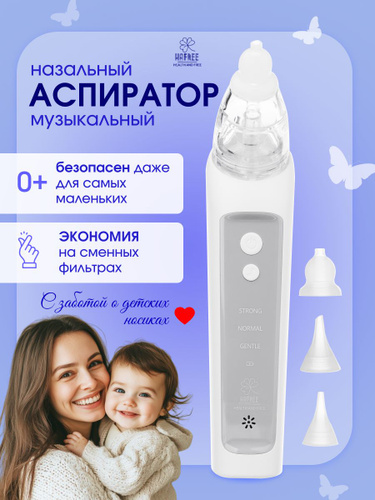 Аспиратор назальный электрический детский HAFREE, электрический соплеотсос для детей и новорожденных от насморка , со сменными многоразовыми насадками