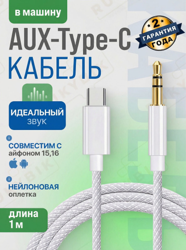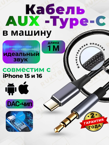 Кабель AUX type-C RUKYBIK в машину / аудиокабель в автомобиль