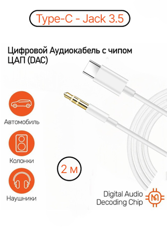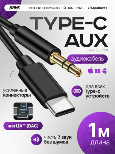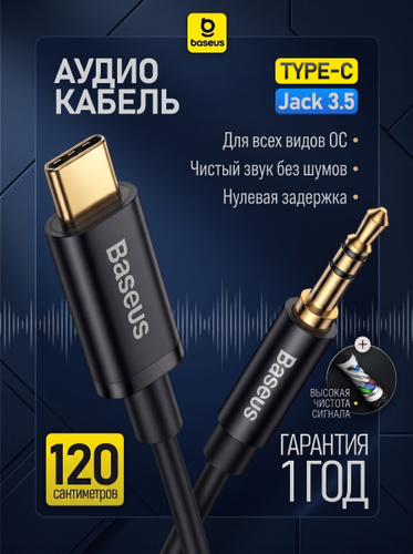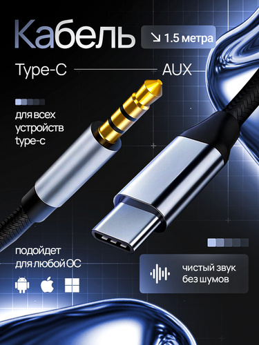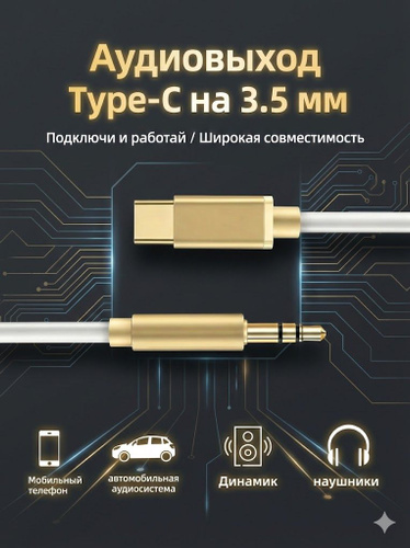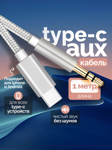 Кабель Type C AUX Jack 3.5 мм, аукс кабель в машину / Аудио кабель 3.5 Jack для телефона и авто