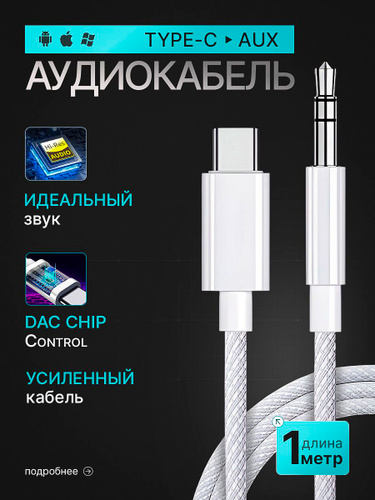 Кабель для смартфонов USB Type-C/AUX 1 метр белый