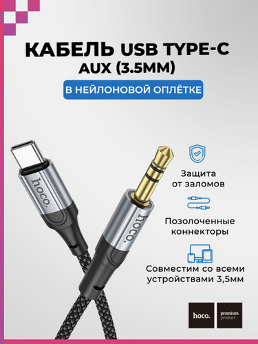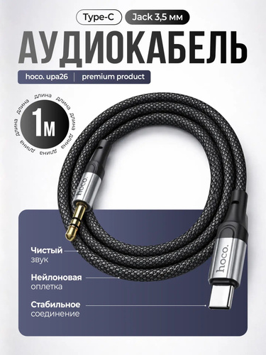 hoco Аудиокабель USB Type-C/3.5 мм, 1 м, черно-серый