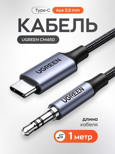 Кабель AUX type-C UGREEN CM450 в машину / аудиокабель в автомобиль 1 метр