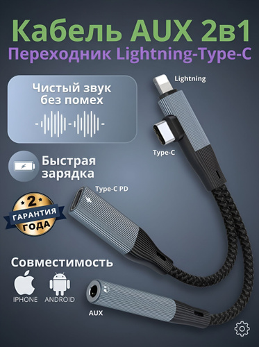 Переходник Type C на AUX /Type-C 2 в 1 / Переходник Lightning - Type-C /