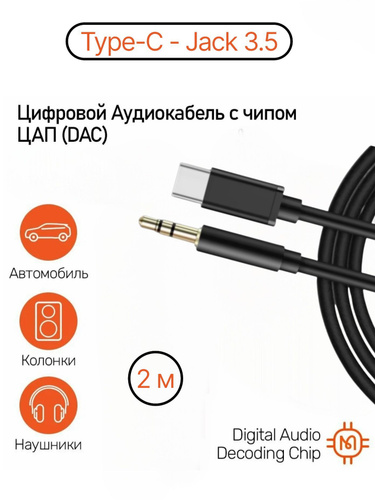Аудиокабель 3.5 мм/USB Type-C, 2 м, черный