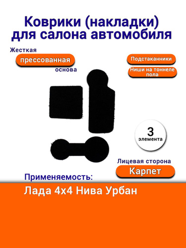 Коврики накладки для салона автомобиля Лада 4x4 Нива Урбан для ниш на тоннеле пола подстаканников карпет прессованная основа