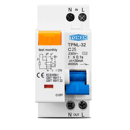 Выключатель автоматический дифференциальный УЗО TOMZN TPNL32 2Р 25А 30мА тип АС