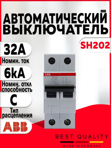 Автоматический выключатель abb sh202l c32 2-полюсный
