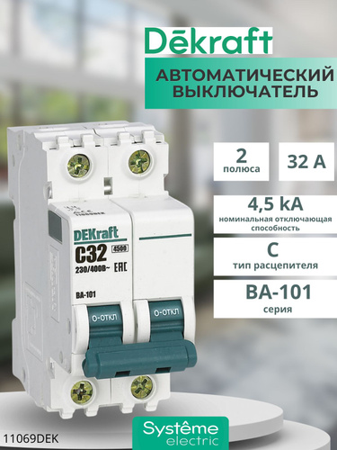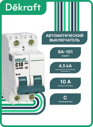 Авт. выкл. DEKraft 2Р 10А х-ка C ВА-101 4,5кА, 11065DEK