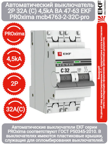 Автоматический выключатель (С) 2P 32А 4,5кА, EKF Basic