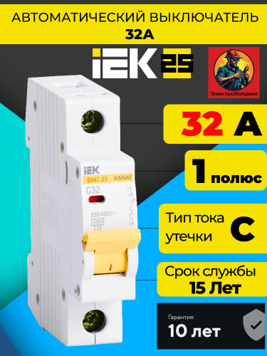 Автоматический выключатель IEK 32А 1Р 4,5кА Тип С ВА47-29 (EH)