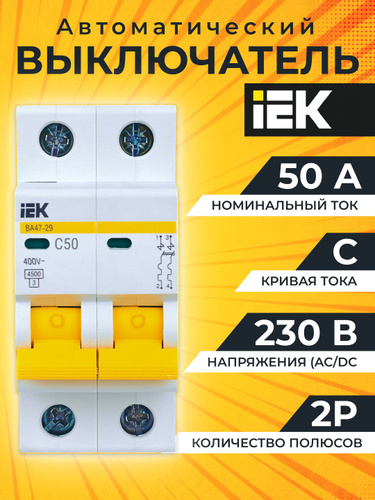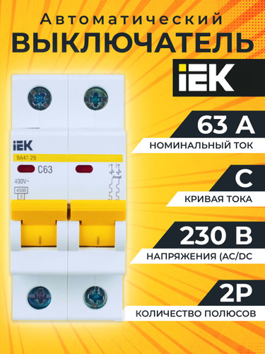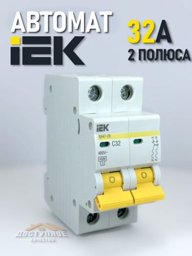 Автоматический выключатель иек двухполюсные IEK 32A серии KARAT ВА47-29 2Р
