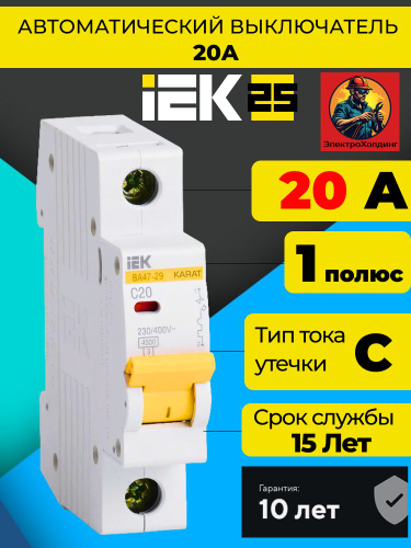 Автоматический выключатель IEK 20А 1Р 4,5кА Тип С ВА47-29 (EH)