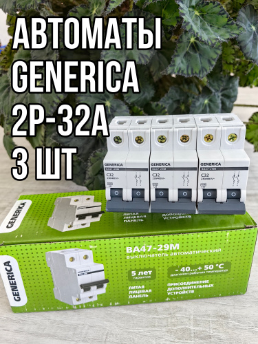 Автоматический выключатель ВА47-29 2Р 32А 4,5кА тип С (3шт) GENERICA