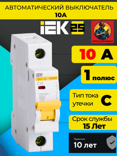 Автоматический выключатель IEK 10А 1Р 4,5кА Тип С ВА47-29 (EH)