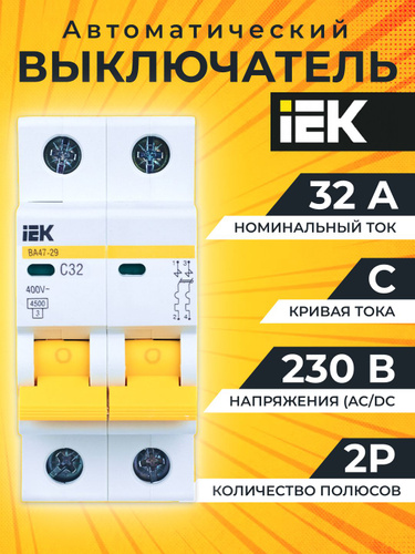 Выключатель автоматический модульный 2п C 32А 4.5кА ВА47-29 IEK MVA20-2-032-C (1 шт)