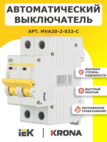 Автоматический выключатель IEK 32А 2P 4,5кА тип С ИЭК MVA20-2-032-C