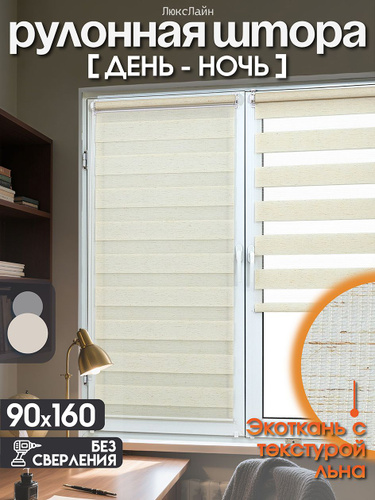 Рулонные шторы Фактурная ДЕНЬ НОЧЬ на окна 90 x 160 см, Слоновая кость Лён , жалюзи без сверления на балкон, на кухню, в спальню, в детскую, на проем , ЛюксЛайн