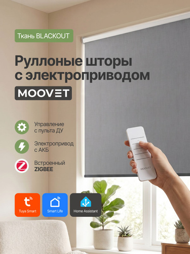 Рулонные шторы с электроприводом MOOVET LUX Blackout/Блэкаут, темно-серые 60x165. Электропривод со встроенной АКБ, Zigbee, Пульт ДУ.