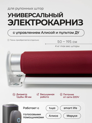 Универсальный электрокарниз для автоматизации рулонной шторы от 50 см до 195 см с диаметром трубы 38 мм Умная штора с голосовым помощником Алиса