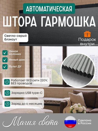 Автоматическая штора светло-серый блэкаут / умные жалюзи / римская штора на окно