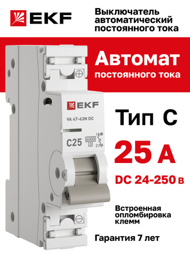 Автомат постоянного тока 13А, тип C, однополюсный 1P, 6kA, EKF AVERES AV-6 DC (Выключатель автоматический C13 (DC))