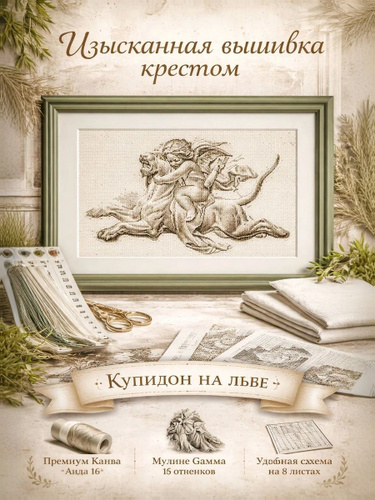 Набор для вышивания крестиком "Купидон на льве" 31,8см х 20,2см