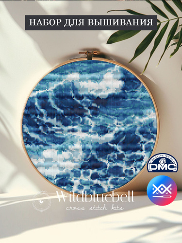 Набор для вышивания крестом WildBluebell "Море", канва Aida 14, нитки DMC, PDF + Saga, 30 % запас ниток