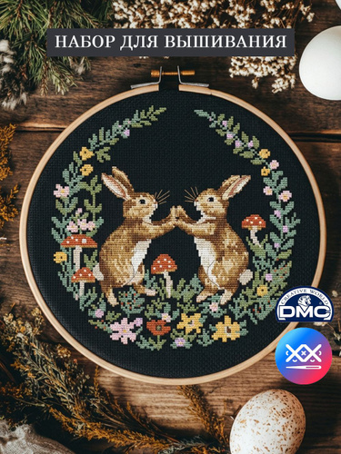Набор для вышивания крестом WildBluebell Зайцы на поляне , канва Aida 14, нитки DMC, авторский дизайн, PDF + Saga, 30 % запас ниток