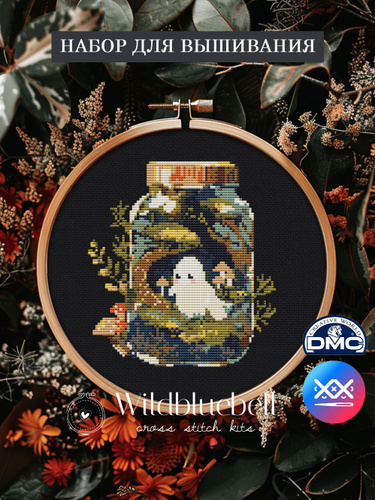 Набор для вышивания крестом "Привидение в банке" WildBluebell CS25 Творческий набор с комплектом ниток мулине DMC, хлопковой канвой, иглой и схемой