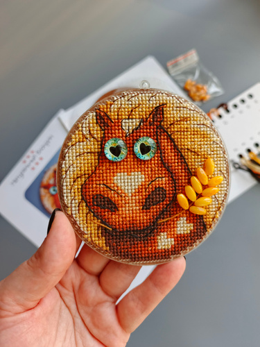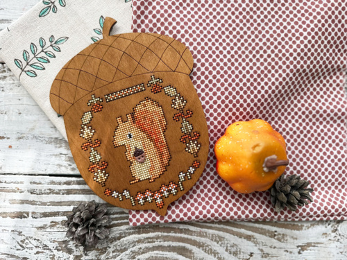 Набор для вышивания крестиком "Белочка в желуде " с авторской пуговицей18*13 см