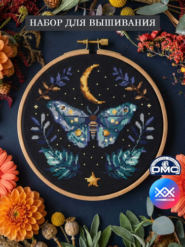 Набор для вышивания крестом WildBluebell "Тайны сумеречного сада", авторский дизайн, канва Aida 14, нитки DMC, PDF+Saga, 30 % запас ниток