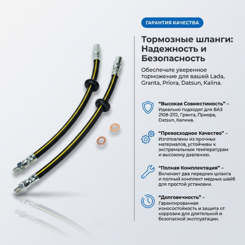 Шланг автомобильный, арт. 2108-3506060-22 Шланг тормозной передний ВАЗ 2108;2109;2110;21099;2113;2114;2115,калина,приора( 2 шланга +2 медные шайбы), 2 шт.