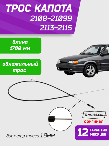 Трос капота 2114, 2109, 2115, 2108, 21099, 2113, длина 1700 мм - ПТИМАШ