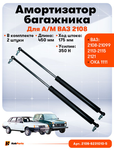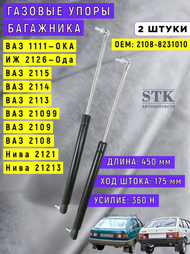 Амортизатор багажника для а/м ВАЗ 2108 (пневмоупор/газовый упор) ВАЗ 2104, 2109, 2113, 2114, 1111, ока, иж комплект из 2шт