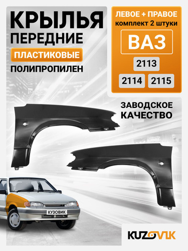 Крылья передние комплект для ВАЗ 2113, 2114, 2115 , 2 штуки левое + правое, пластиковые под покраску заводское качество