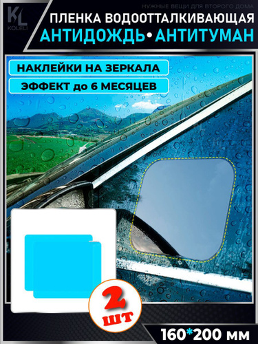КоЛёли / Водоотталкивающие пленки на зеркала и стекла, наклейки антидождь, антитуман, 2 шт. (16х20 см)