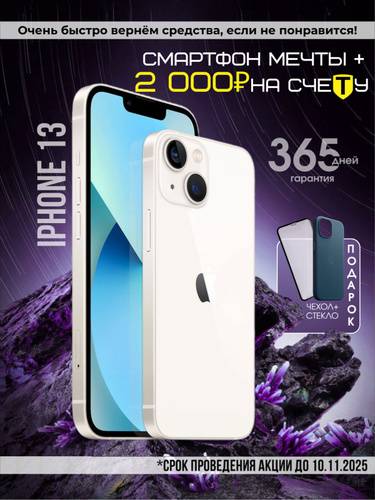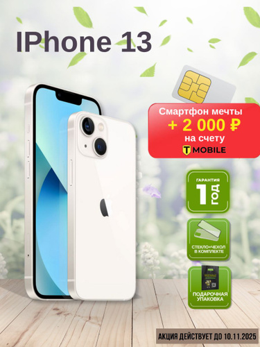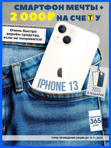 Apple Смартфон iPhone 13, nano SIM + eSIM, Чехол + стекло в подарок 4/128 ГБ, белый