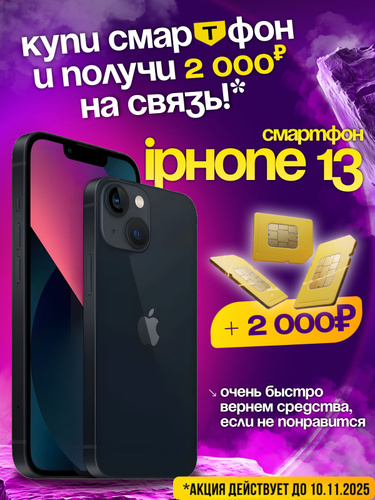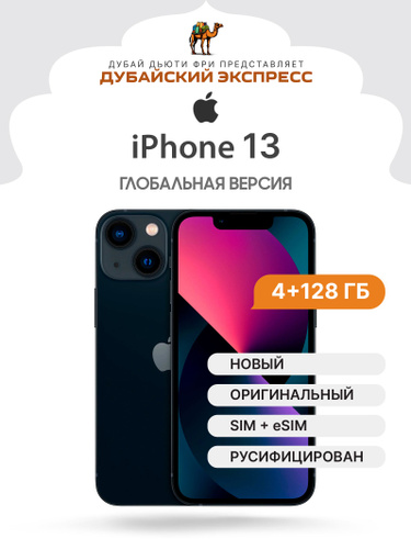Apple Смартфон iPhone 13 - SIM+eSIM (новый, не активирован, Face Time работает, eSIM поддерживается) - Global 4/128 ГБ, черный